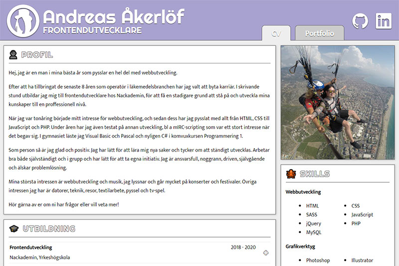 This is my old site / CV / portfolio. I designed it and coded it as an exam in the course Graphic Tools at Nackademin.